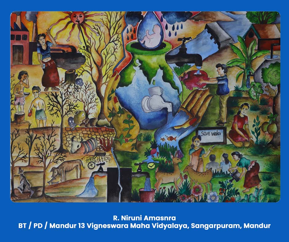 A large number of paintings were submitted to us by school children from all over the island for the island-wide inter-school painting competition held to mark World Water Day 2025 with the aim of developing the connection between water and the student community. The selection of the winners from among the school artists who participated in the competition was carried out at the head office premises with the participation of a panel of senior lecturers from the University of Fine Arts. The top management of the institution also participated in the event.