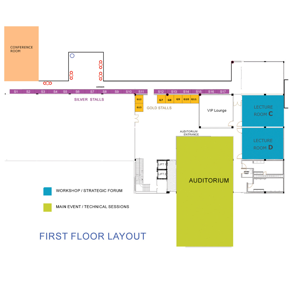 | Gold Stall | 4 | 2mX2m | Second Floor (6 Nos) | 13 | 1,000,000.00 | 3,350.00 | 300,000.00 | 1,000.00 | AC, One chair, One Table, One socket outlet |