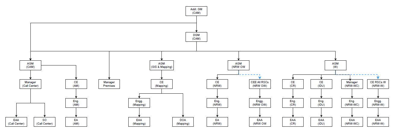 Under the Additional General Manager (CAM), this section handles land acquisition, leasing, and management for NWSDB operations.
