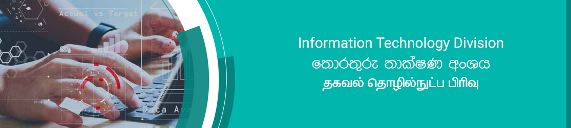 Information Technology Division which operates within the authority of the Additional General Manager (Corporate Services) is responsible for IT Systems and Solutions of the NWSDB. The division is operated under the overall supervision and authority of the Deputy General Manager (Information Technology) with 2 Assistant General Managers dedicated to two different subject areas; Infrastructure Services and Application Development.