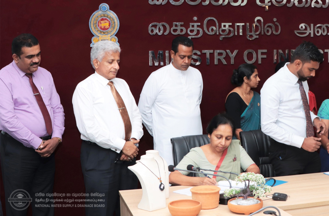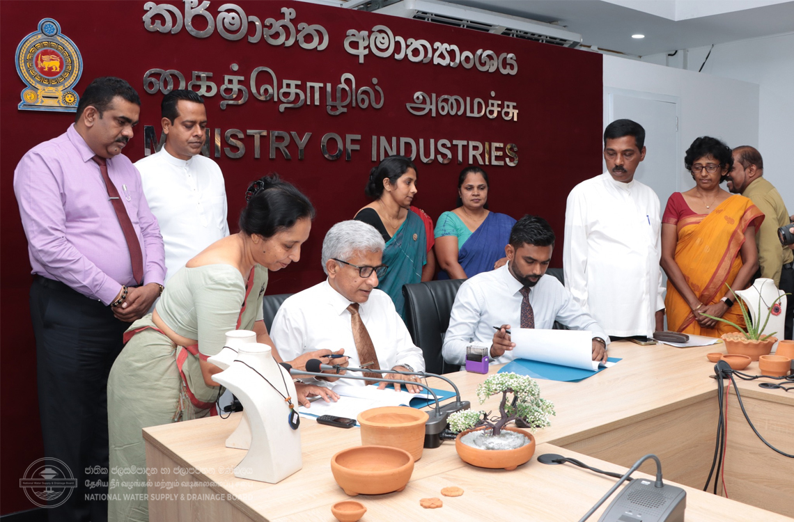 General Manager, Dr. (Eng) Wasantha Illangasinghe and Chairman Mr. Nishantha Ranatunga from NWSDB & Chairman Mr. W.G.K.B Ranathunga and Director Ms. P.K. Nisham Asangika from National Design Centre (NDC) has signed the MoU.